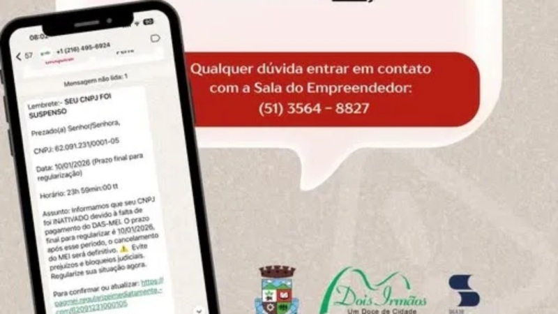Alerta de golpe: Falsas mensagens ameaçam bloquear contas de MEIs em Dois Irmãos