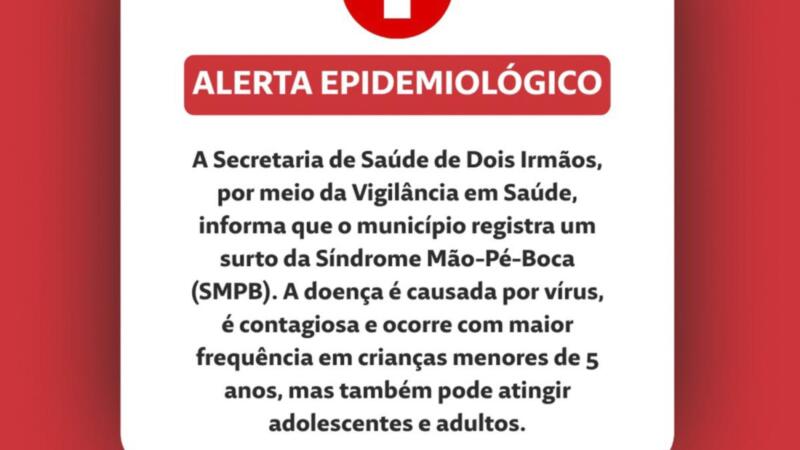 Alerta Epidemiológico: Dois Irmãos registra surto da Síndrome Mão-Pé-Boca