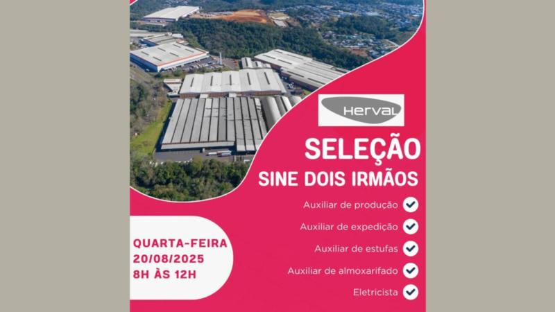 Grupo Herval realiza seleção no SINE Dois Irmãos na quarta-feira 18/08/2025